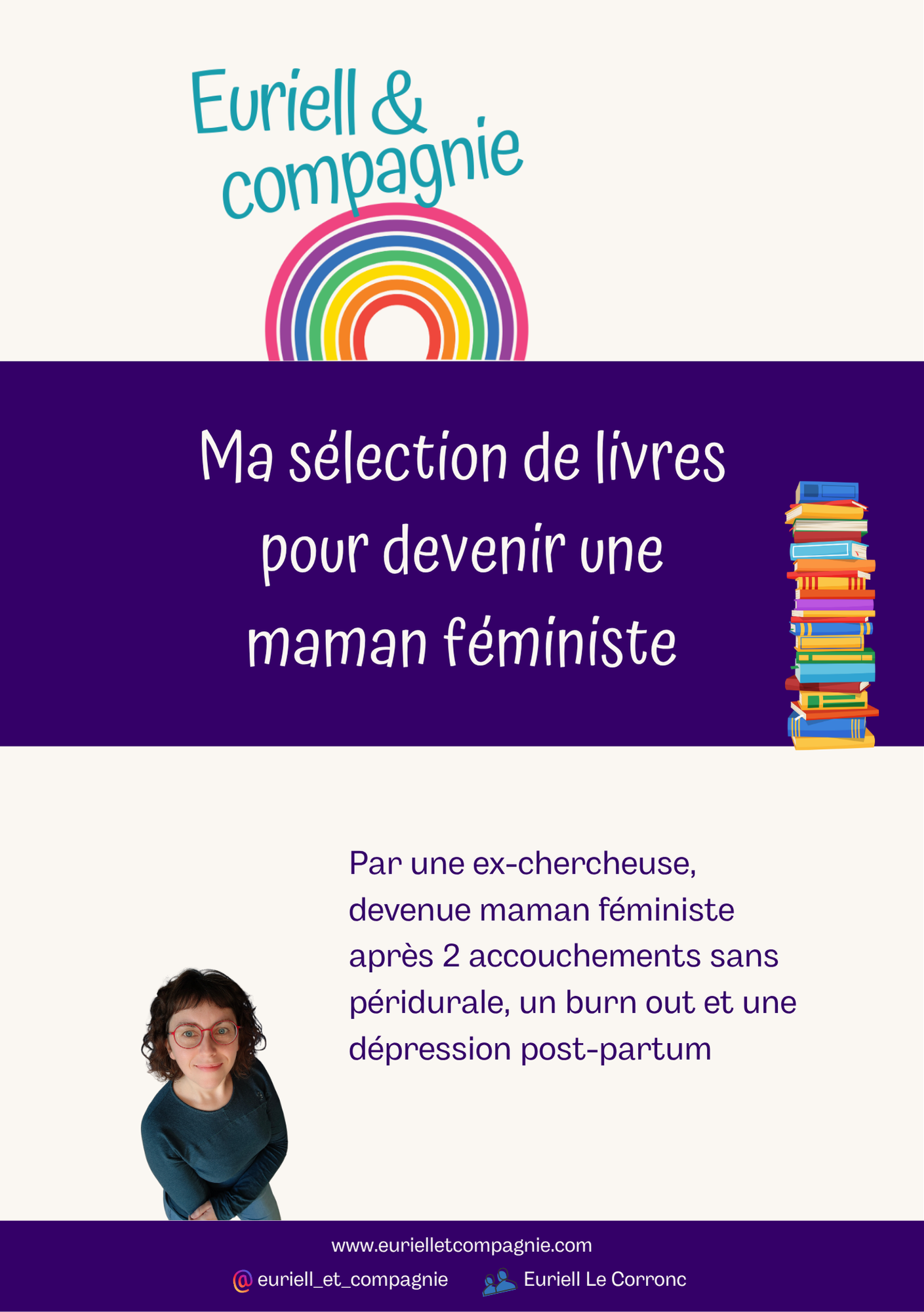 accouchement, post-partum, burn out, l'éducation non sexiste des enfants, le corps, le couple et l'argent, l'histoire oubliée des femmes, les mythes et contes classiques, la pop culture...